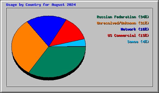 | 5 | 3550 | 1.05% | 512538 | 3.60% | http://cooter.cc/priv_stats/usage_202405.html |